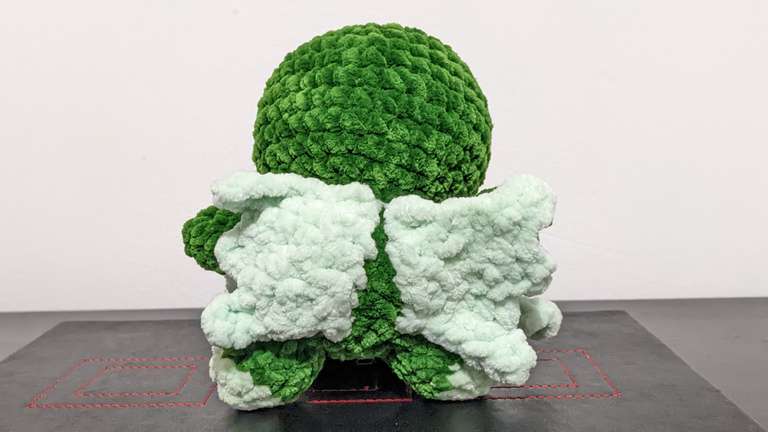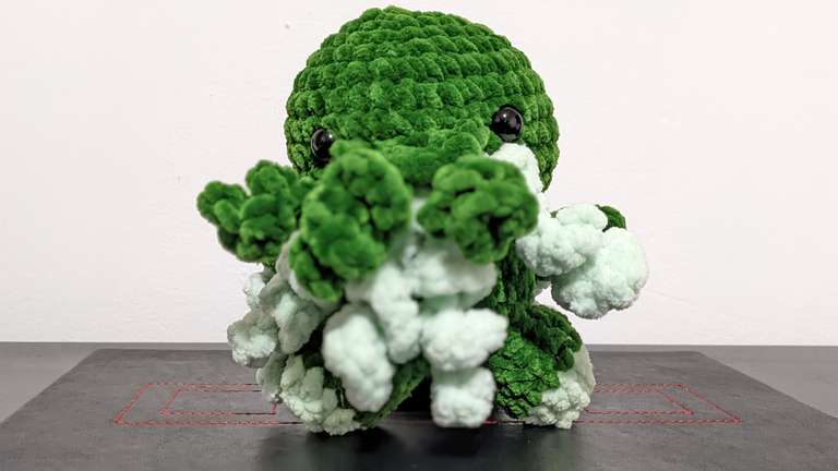 Cue a quick browse of Etsy for a suitable crochet pattern (NotYourMommasArtwork's Baby Cthulu, found here), and a hunt online for a pair of suitable greens in a velvet or chenille yarn (Lovecraft.com's Paintbox Chenille in Peppermint and Leaf green, see here).