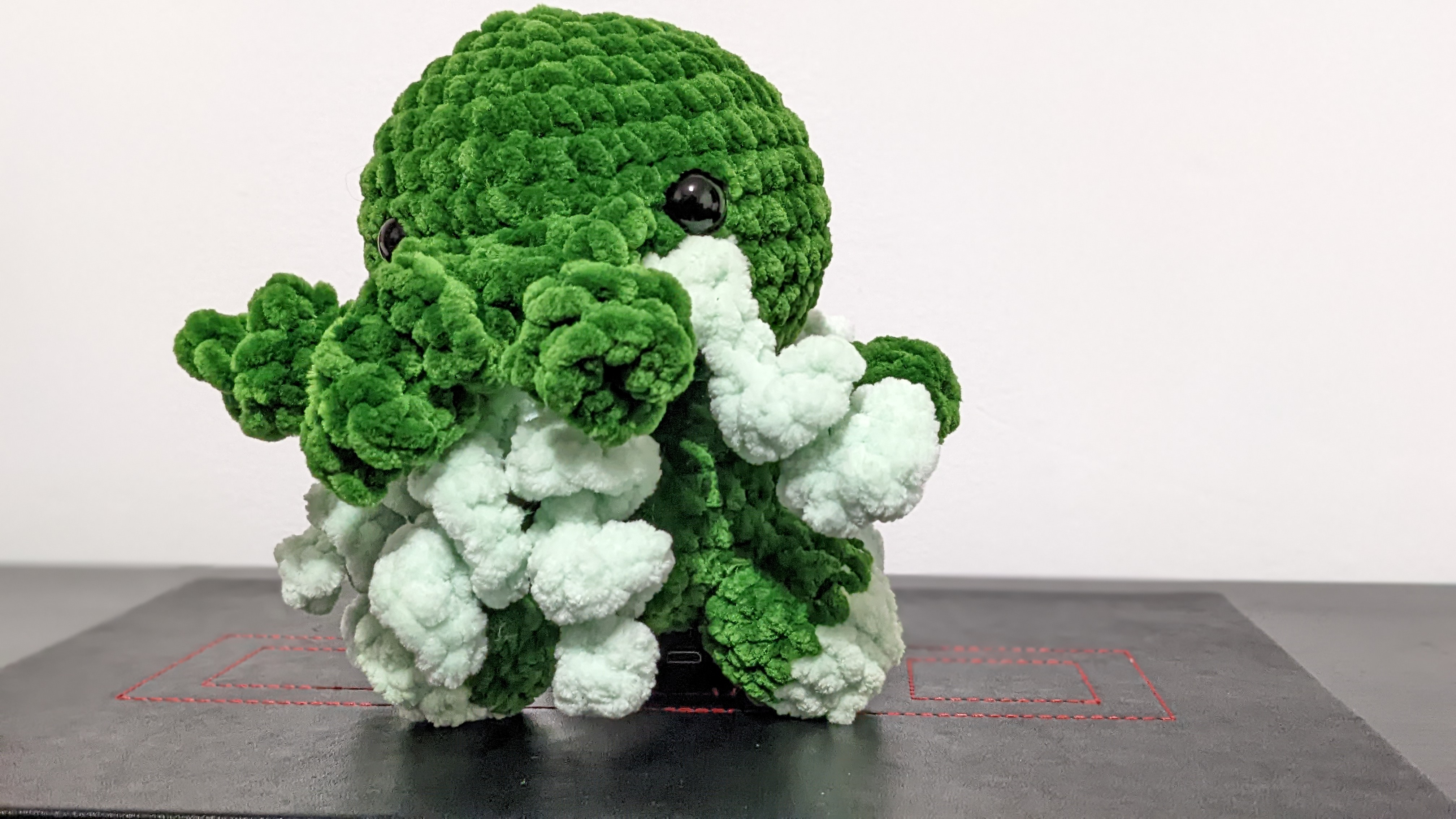 So my brother had a little pet project that he called Project Cthulu, and upon sight of Fudge's Friend the Octopus, was struck by the need to have a fuzzy friend of his own in the form of a project mascot.