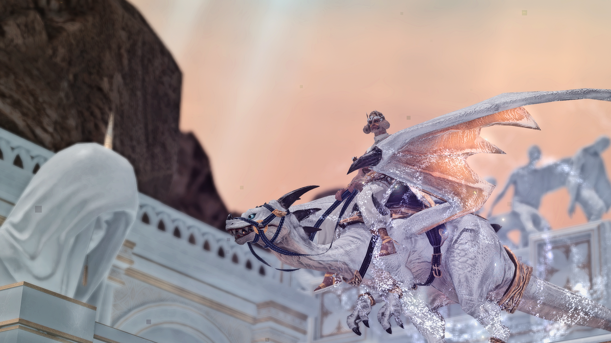 Personally, the Ruby Gwiber is very pretty, but the Innocence Gwiber does match my new RDM look perfectly, even down to eye colour. Those two have both gone in my Favourite Mounts Roulette, but I'll admit the Landerwaffe has not. It's... a very particular mount in terms of style and size and so I'll keep that aside for now.