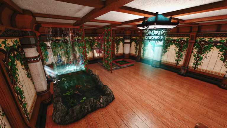 The other half of the upstairs might become a little crafter's corner - with some of the workbench items for aesthetics (since I won't get any benefit for crafting until the cap goes up to level 100 and I'm our company's only crafter) and bits like that. Maybe some armour displays or something too? I'm not sure yet.