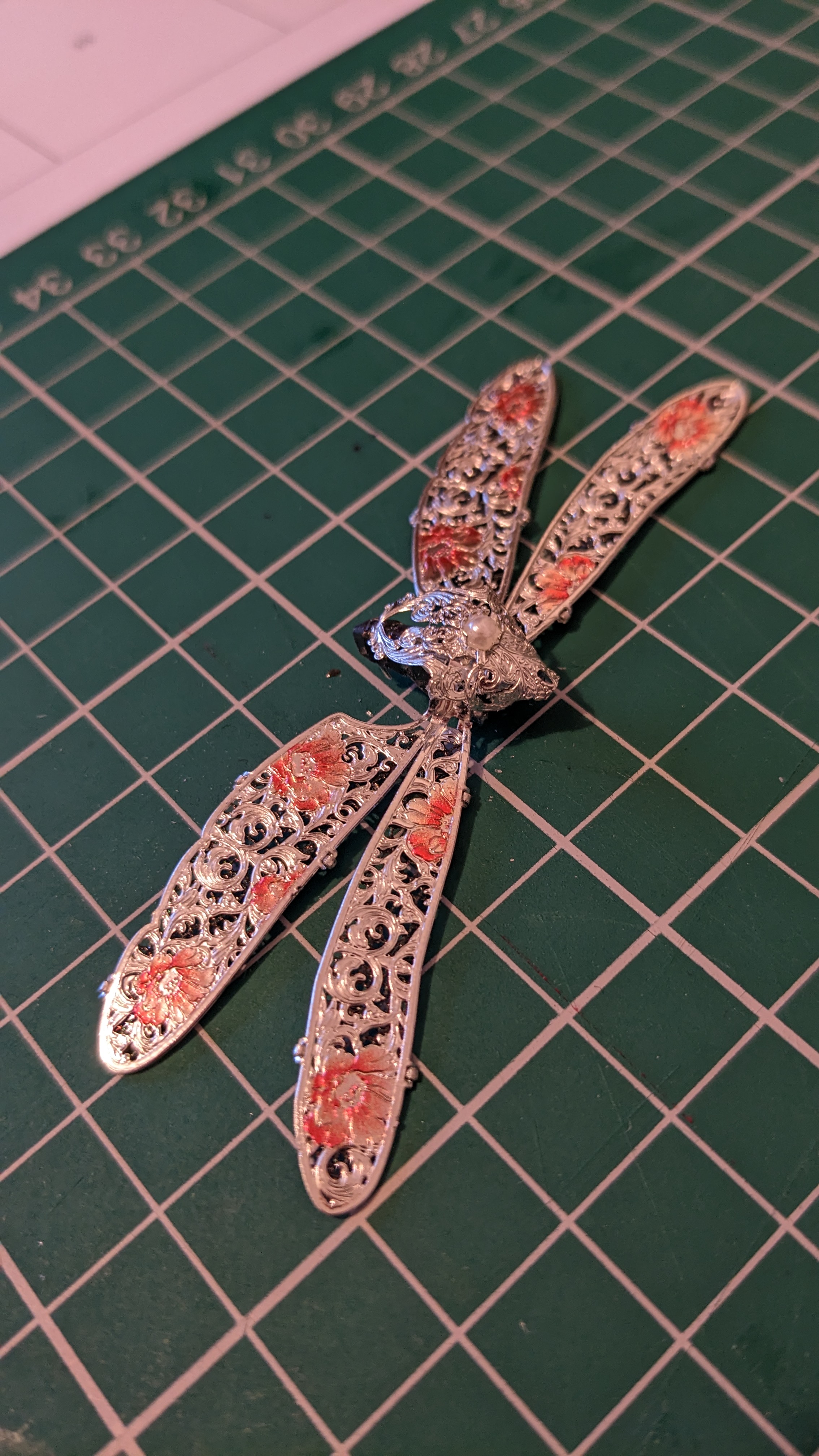 The thorax was all curves and the biggest PITA piece I've run into yet from PC. It's also supposed to hold one of a pair of magnets that came with the kit, but that's for if you'd like to wear it as a brooch or something so I just left the magnet out.