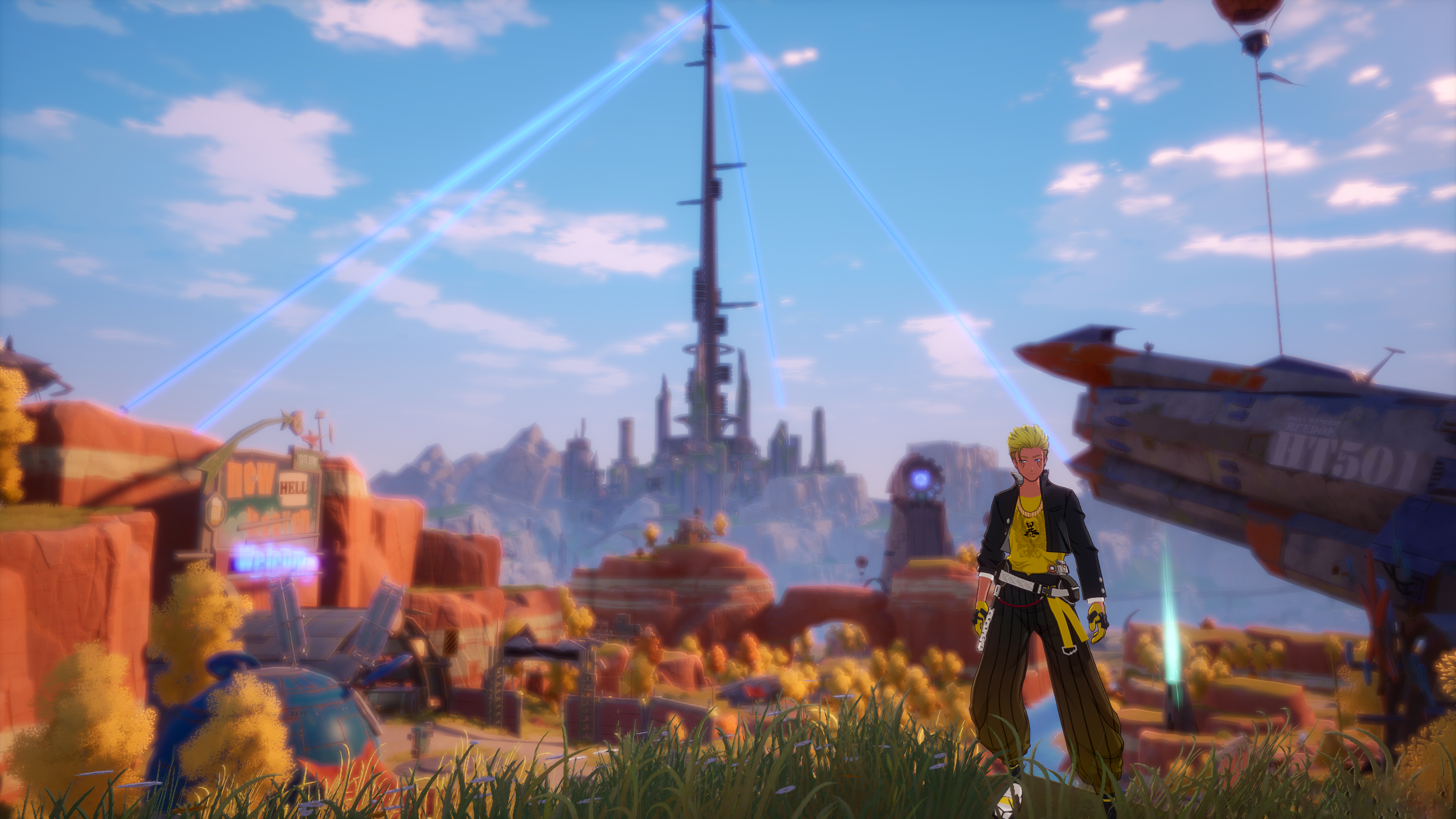 Today's is from Tower of Fantasy though, the Wasteland set, dyed to a yellow gold. It's not in keeping with my internal style guide for Vance/zeĀ but it does look rather good in ToF and I'm torn between it and the Wanderer set he's wearing in my previous post about Vanze.