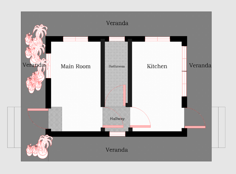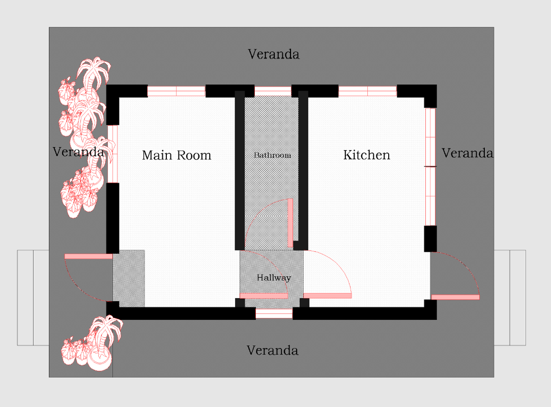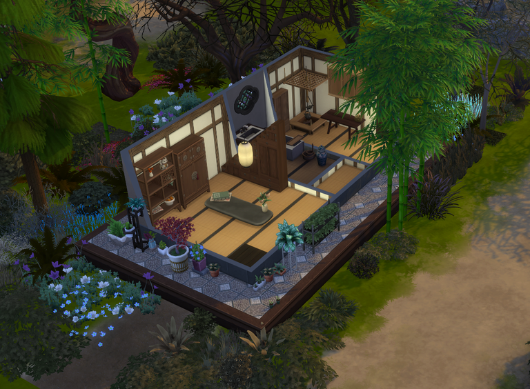That last image is a vision of what the same cottage, complete with modern internal bathroom rather than outhouse and keeping the veranda to suit its location in an overgrown jungle, would look like if it were built along more traditional lines. A very simple farm cottage would probably constitute 3 'bays' with each bay being about 3.6m wide and 4.8m deep for a northern, cooler climate property. Meishen's cottage is about 1 bay in size total, in either layout, but I've sub-divided into 3 bays regardless for the historical design just to show how it would look.