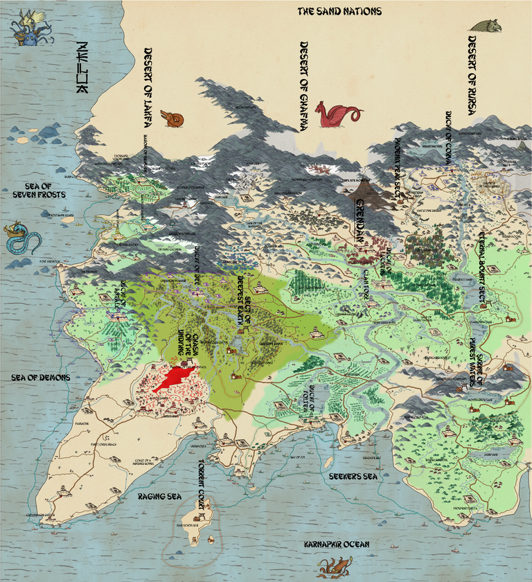 I'll add more to this as it gets made, most likely further updates to the whole-empire map (definitely still in progress) and another map equivalent to the Sect map but for the later part of the story. I'll probably also add more building views or floorplans as well, if they're needed. (I've been reading up on the relevant architectures so look forward to it™️.)