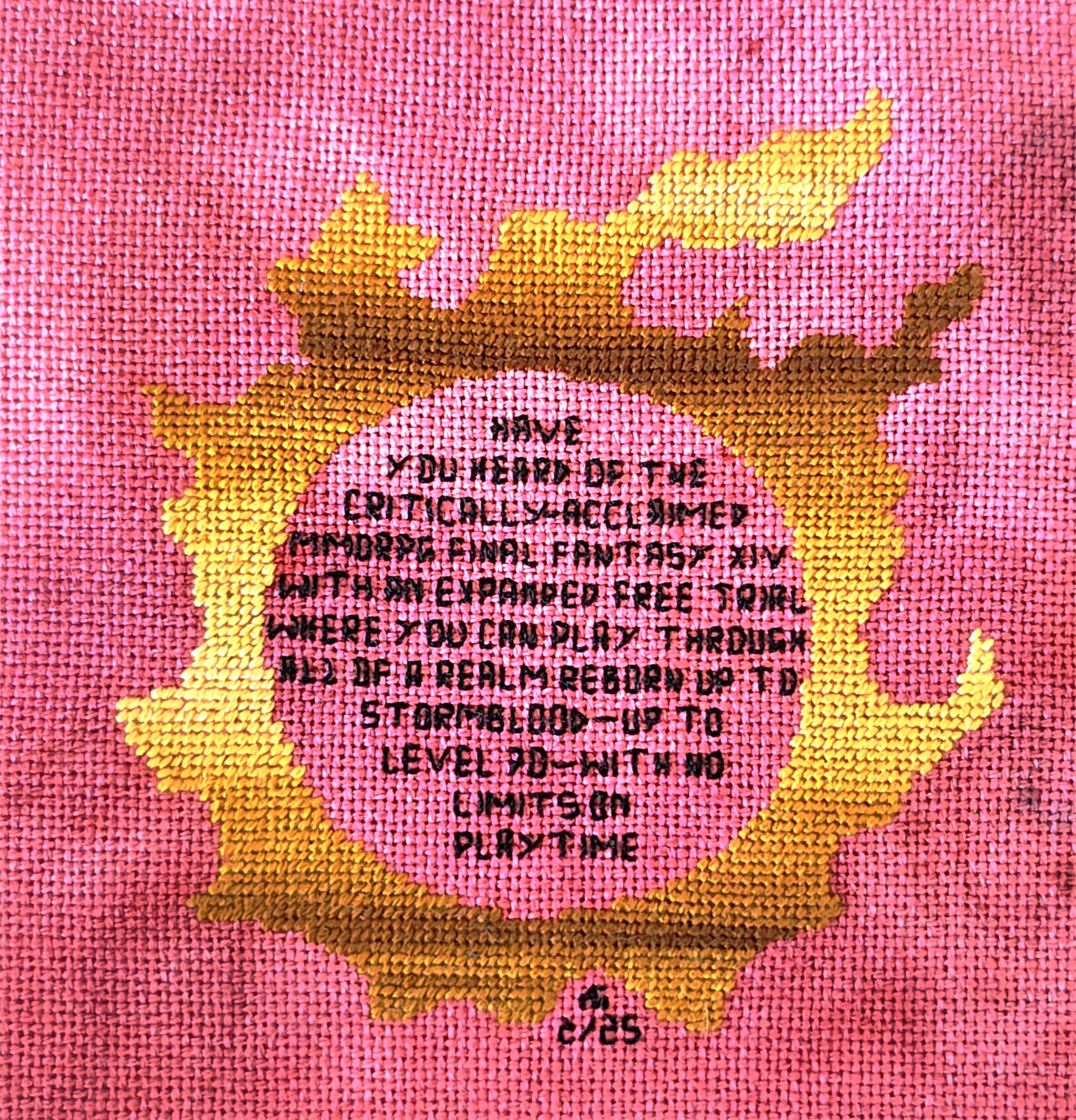 In service to this unending goal, I have stitched myself a little recruitment piece - based off the popular community meme that says the same thing - so I can just show that to potential victims recruits rather than me blather on about how amazing the game is, and by the way, you can try it for free!